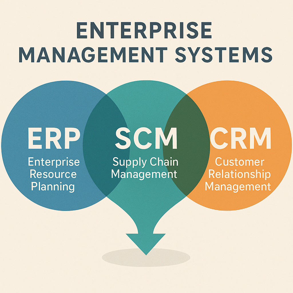 The session begins by tracing the historical development of three foundational enterprise technologies: ERP (Enterprise Resource Planning), SCM (Supply Chain Management), and CRM (Customer Relationship Management). Each is examined as a distinct system with its own purpose, evolution, and impact on organisational operations.
